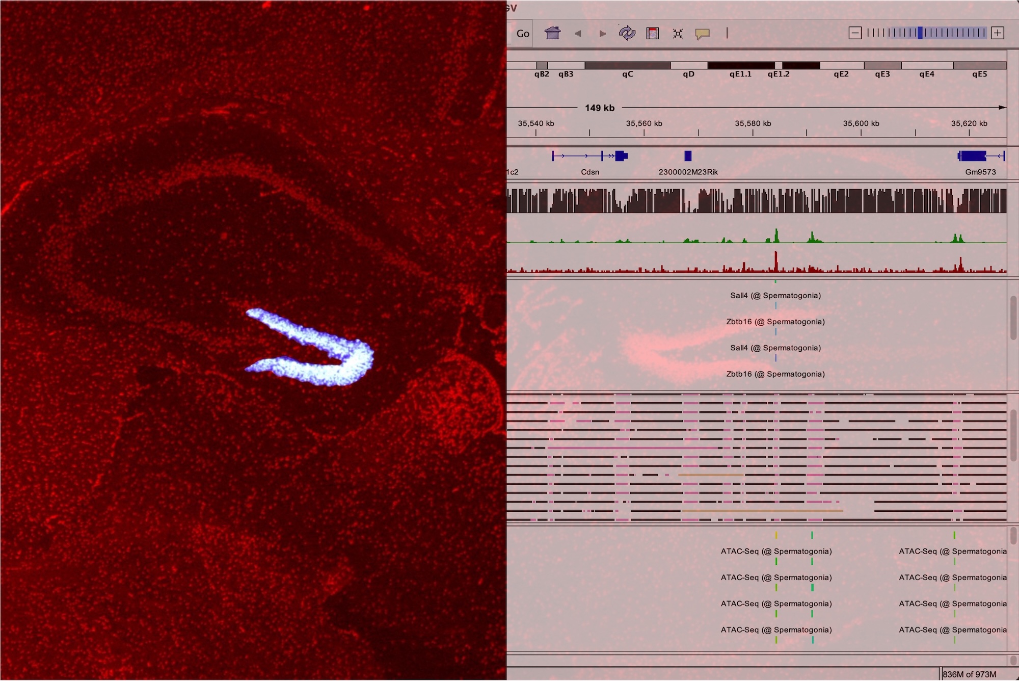 その謎を解くための鍵となるのが 時空間的な遺伝子発現 です。オキラボでは PIC という技術を開発し、局所的に発現する遺伝子を網羅的に解明します。また、ChIP-Atlas というエピゲノミクス統合データベースを開発し、遺伝子発現の制御機構を明らかにします。また両者を融合した研究により、疾患の成り立ちの解明や創薬への応用をめざします。